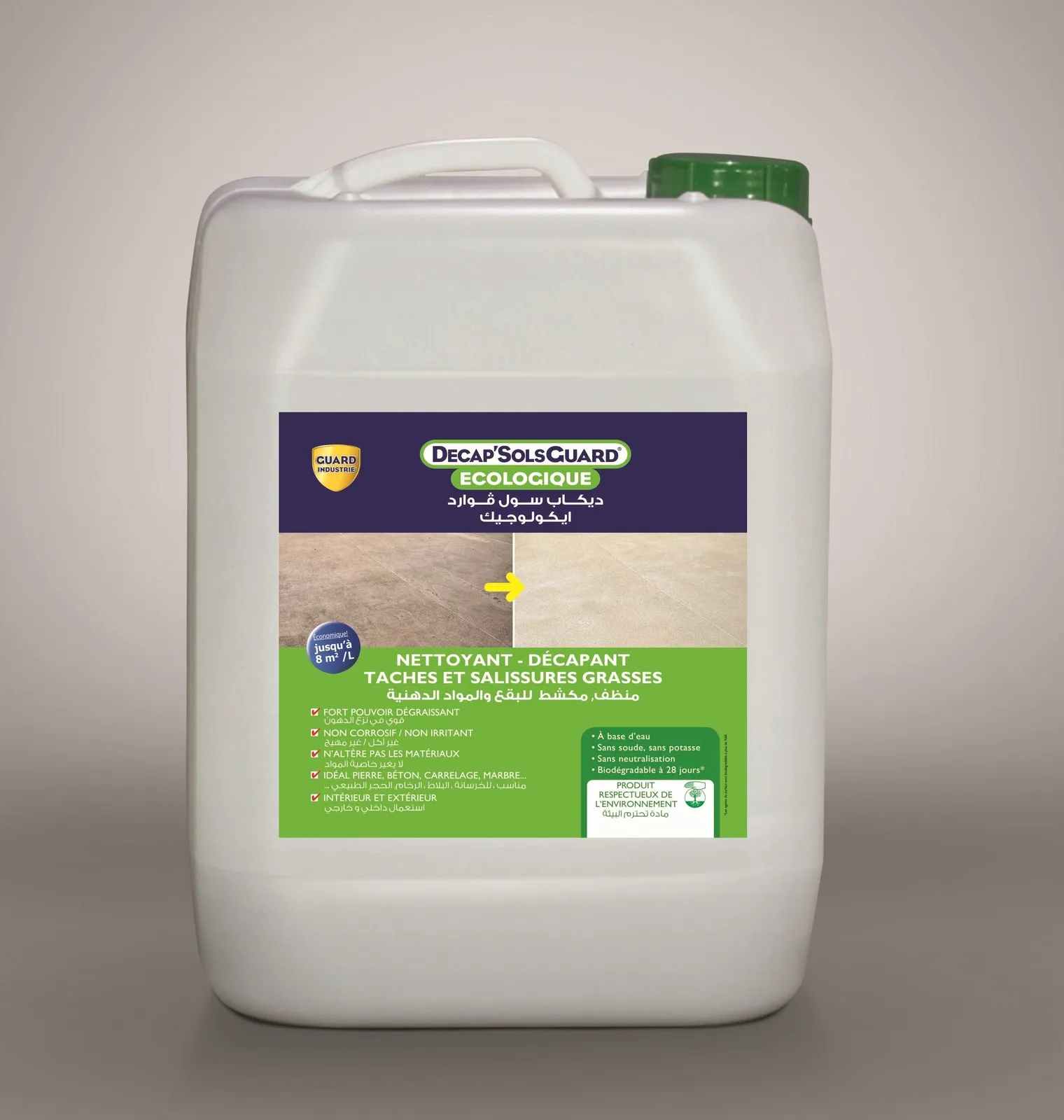 DÉCAP'SOL GUARD - GUARD INDUSTRIE - NETTOYANT POUR L'ÉLIMINATION DES SALISSURES ET TACHES GRASSES SUR SOLS MINÉRAUX